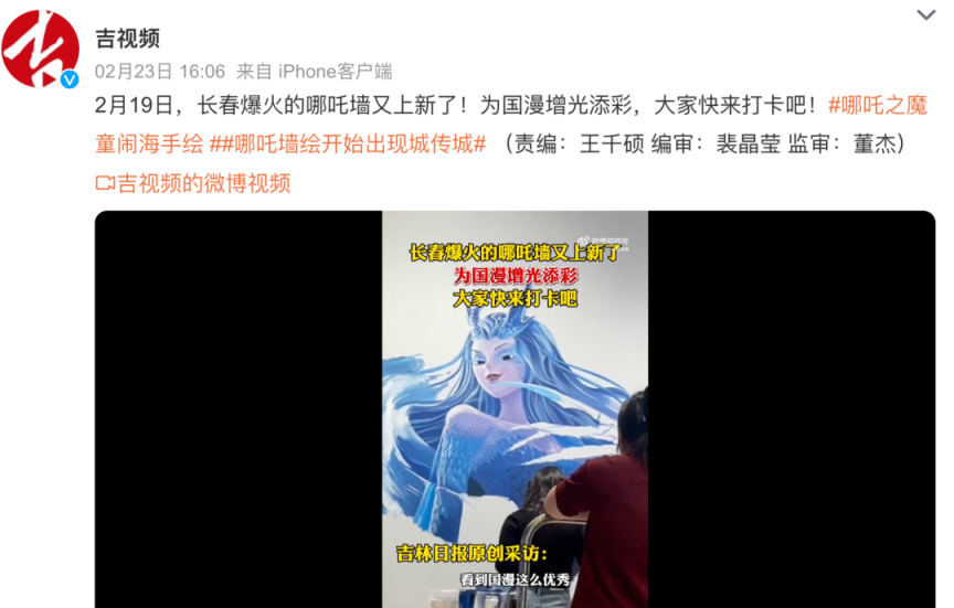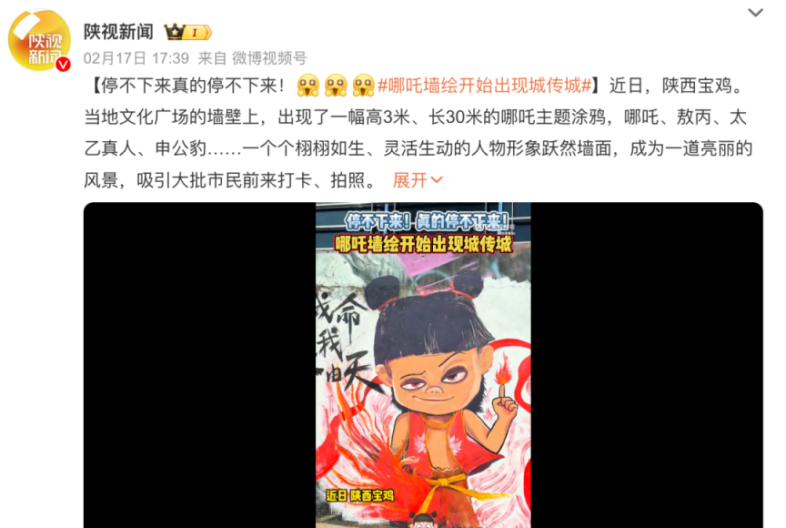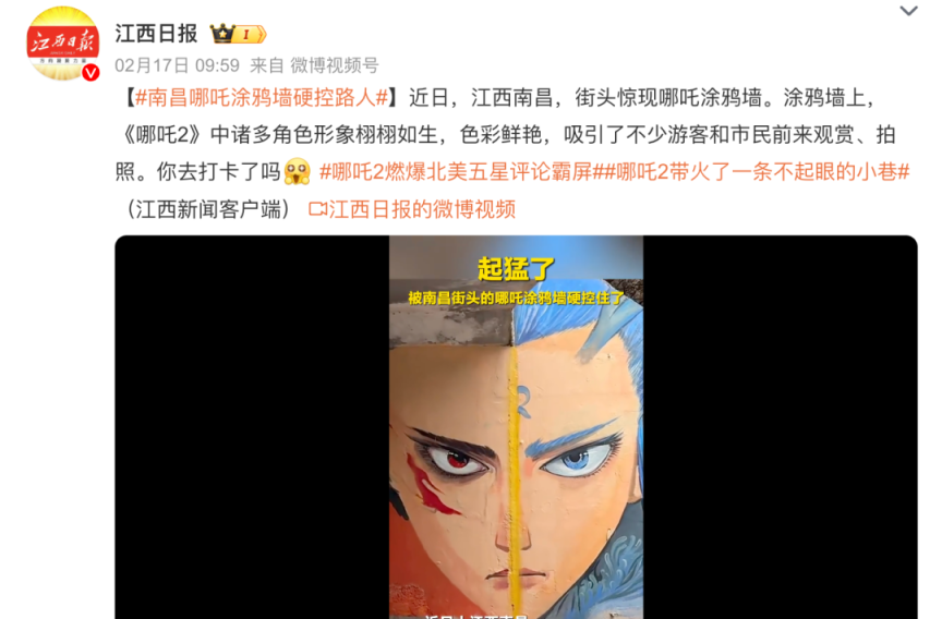 在电影“哪吒2”走红之后,深圳,广州、长沙、南昌等地纷繁出现了涂鸦墙。