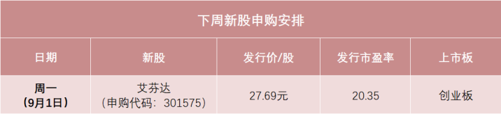 左证现在的刊行安排manbetx体育游戏app平台,下周只好1只新股可申购,即下周一(9月1日)的创业板新股艾芬达。